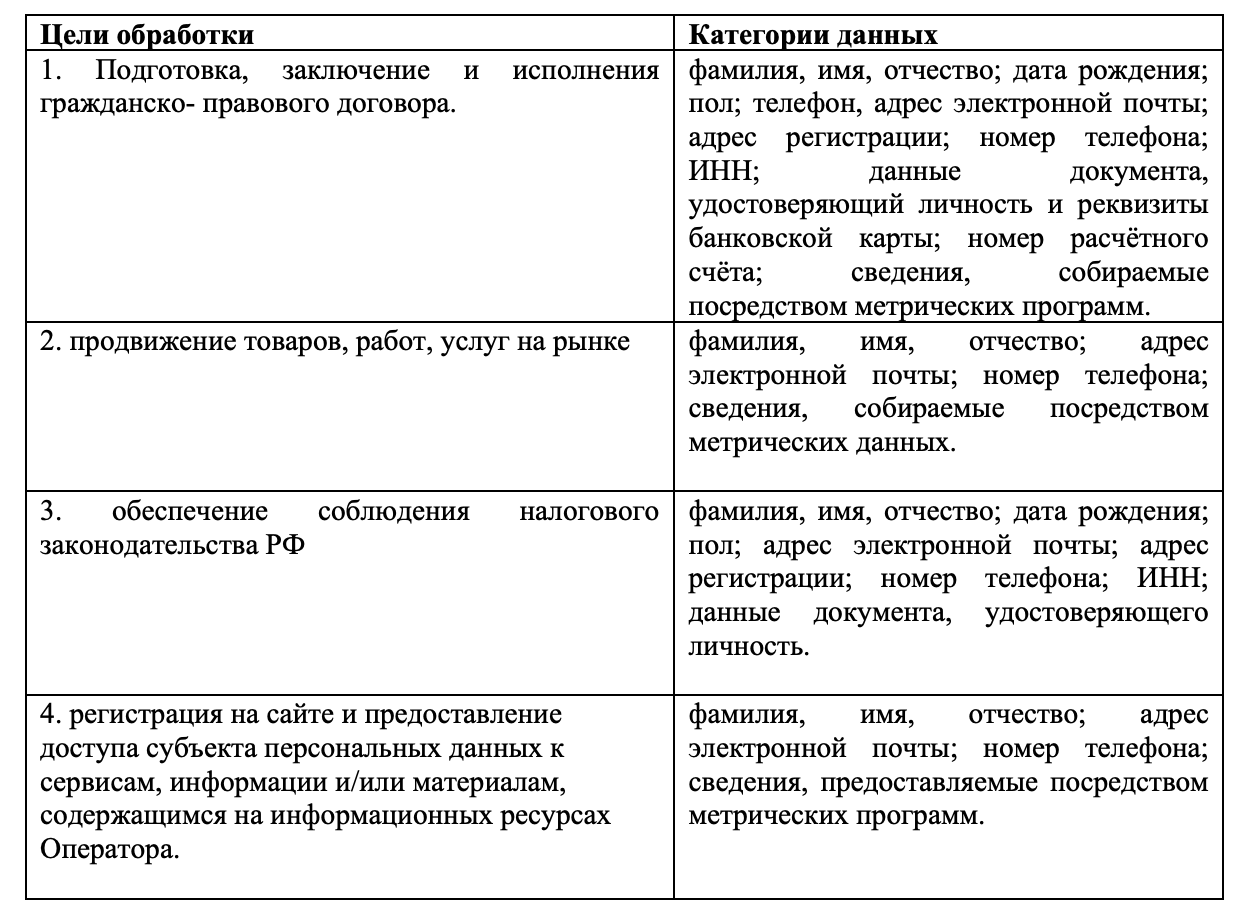 1.9. Отказ Субъекта персональных данных предоставить Оператору следующие категории данных: имя, телефон приводит к невозможности заключения и исполнения договора между Оператором и Субъектом персональных данных. В связи с чем, Оператор при отказе Субъекта персональных данных предоставить указанные категории персональных данных, вправе отказать Субъекту персональных данных в заключении и исполнении договора.